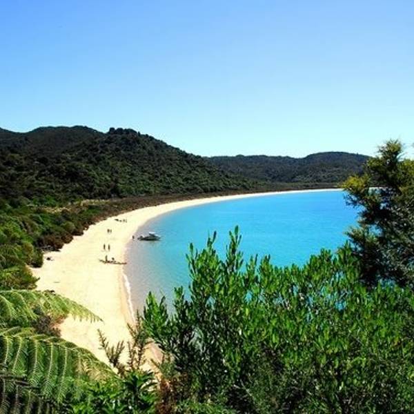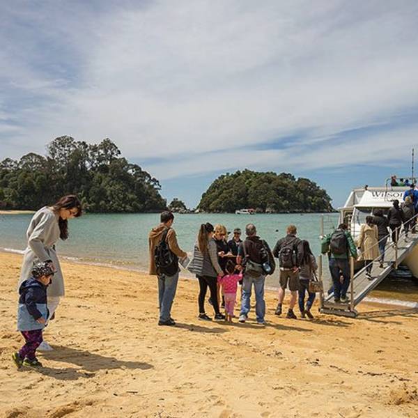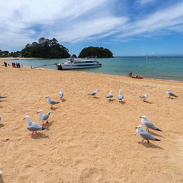 从乘坐的Sea Shuttle船下来,登陆美丽的Awaroa Bay,开始徒步 展开