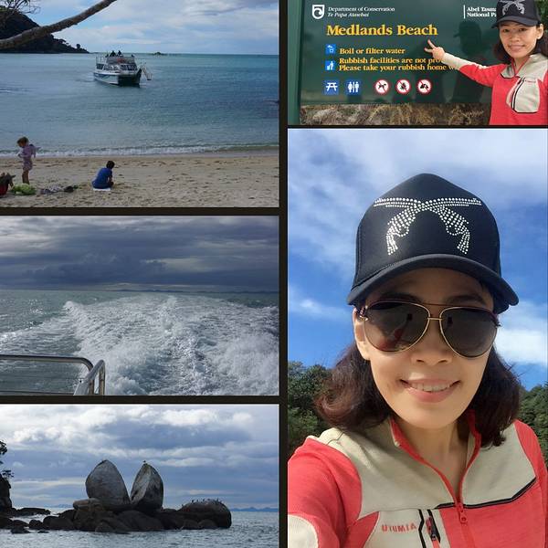 从乘坐的Sea Shuttle船下来,登陆美丽的Awaroa Bay,开始徒步