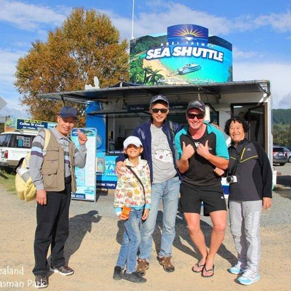 小小的莫图依卡有四家经营塔斯曼公园游船的公司,徒步线路有长有短,上船和落船的地点也有所不同,我们在花园小屋咨询了耐心的女主人,选定了适合我们的徒步线路,从TORRENT BAY LODGE下船徒步到BARBAY这段上船,大约十公里。然后请她帮我们预定的船票:60纽币每人,儿童减半。