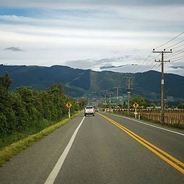 车里一只长相复古的狗和一只手提包,车内整洁的一丝不苟,一晃间,回到了中世纪英国。开往布伦海姆的沿途,离开了海景,满目青绿,简单风景,却是无边美景,真想这样一直开下去。运送青口mussel的货车,我们途经的小镇Havelock是新西兰的著名的青口之都