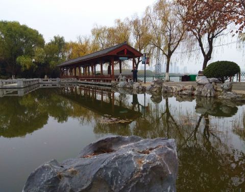 金银湖湿地公园位于武汉市东西湖区金山大道。可乘地铁6号线到金银湖公园站下。 是生态文明主题公园和国家城市湿地公园。 这里风景优美,空气宜人,水天一色,环境很好。 主要景点有连廊、潋滟亭、古韵梦兰、渔人码头、九曲连桥、廊桥观鱼、清风绿道、落日观潮等。