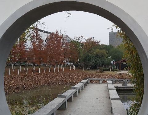一座以水生植物为主的自然生态郊野型湿地公园,有自行车道,夏天去最好,不觉得热,静谧哟,又看到了紫色的那种花,还有菖蒲,美人蕉,荷花,水芋头的大叶子,鸭子,鹅,有一处九曲桥,景色挺文艺的~