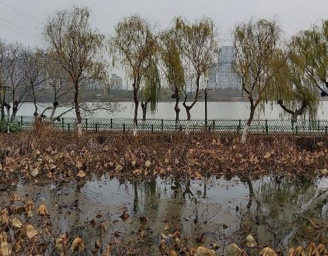 金银湖在武汉市远城区的东西湖区,可以远远地看到鸭子游泳。冬天的荷景甚是别样,不知道半年后的夏季,这些荷花如何重新绽放。