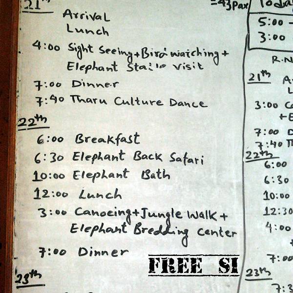今天我们早晨要乘坐BLUE SKY去奇特旺,坐这个班车的地方很好找,走上个二十分钟左右就可以到,车子一般破,也不大舒服,车上有小电扇,我们的坐位是在快到最后面了,车上当地人和白皮肤的老外比较多,我们倒是显得有些更类了,哈;我喜欢这种旅行的方式,不喜欢都安排好的东西,这种自己安排自己掌握的东西更有意思,当然不同理解的人也可以称作为“累”; 加都到奇特旺需要5、6个小时的时间,所以我们到达奇特旺的时间就是中午的时候了,路依旧是那种路,颠簸,坐在上面并不好受,特别是我的老婆,经过昨天一夜的汽车颠簸呕吐,今天刚刚好一些又要开始了。 中间有加餐的机会,不过我觉得主要是当地人吃,这可能是他们的早餐,不过我们也买了一些东西吃,嗯,还不差,应该是很不错,这个时候我有点爱上尼泊尔的美食了。而且很便宜啊,对了,有可能大家也知道,尼泊尔的物价是很便宜的,这也是很多人喜欢来这里的一个原因之一。 奇特旺真是热啊,来之前有准备,但是准备不是特别充分;当地的导游开车来接了我们,每一个酒店的宣传册不一样,我们就靠这个东西来联系我们的导游;开车到酒店,安排住下,把行程给我们,吃过午饭,需要休息一下了,旅途的疲惫需要缓解一下,也可以错开最热的那个时候; 下午的行程是看日落(后来才知道的,上学时不好好学英语的后果)和晚上去看当地的民族舞蹈,很精彩。 睡醒之后还有一个事情就是熟悉地形,周边走一走,这是我的一个习惯,不知道是不是别人也是这个习惯,我觉得这个习惯还是必要的,这也是我们探知未知好奇的事情的兴趣,虽然导游给我们安排了固定的项目,但是我们还是有大把的自由时间可以来支配,我喜欢支配自由的时间,可以去做任何事情,最好不要睡觉,很浪费;