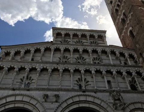 教堂外部通体都...卢卡圣马丁大教堂又叫卢卡大教堂或圣马丁大教堂,始建于 11 世纪,是一座罗马风格的建筑。教堂高雅精致的正面采用了当时极为流行的卢卡 - 比萨风格,在设计时考虑到要与已经存在的钟楼保持协调。