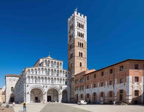 圣马丁大教堂 Cattedrale di San Martino,始建于11世纪,是一座罗马风格的建筑。教堂高雅精致的正面采用了当时极为流行的卢卡-比萨风格,在设计时考虑到要与已经存在的钟楼保持协调。教堂内部在14-15世纪时进行了改建,卢卡本地雕刻家、建筑师西维塔利(Matteo Civitali, 1436-1502)设计了讲道坛和小神殿(Tempietto)。教堂的艺术品主要收集在圣器收藏室和大教堂博物馆(Museo della Cattedrale)里,前者收藏了丁托列托(Tintoretto, 1518-1594)的《最后的晚餐》和萨伏那侯爵伊拉里亚•德尔•卡雷托(Ilaria del Carretto, 1379-1405)的大理石墓碑,后者则收藏了许多15-16世纪的宝贝。