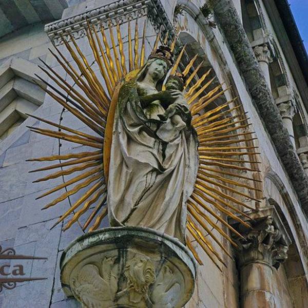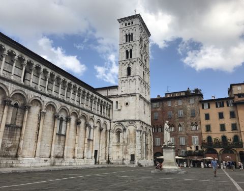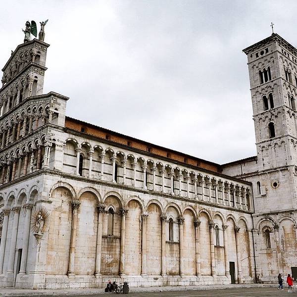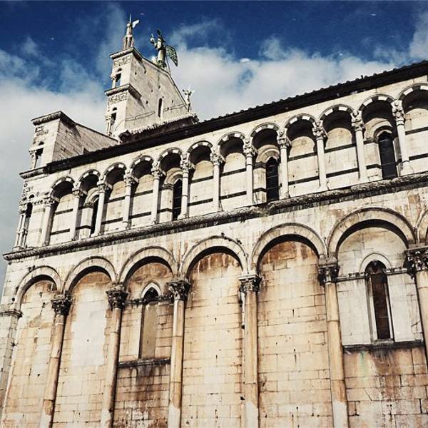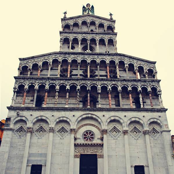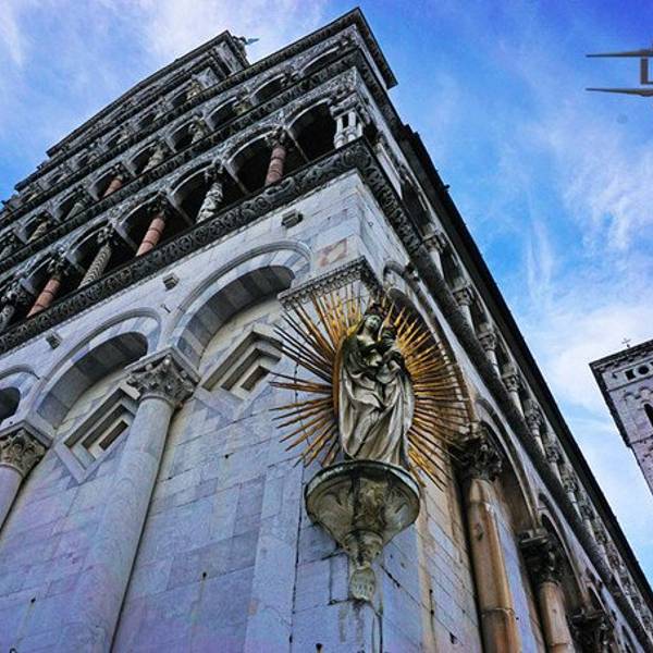 圣弥额尔教堂 Chiesa di San Michele in Foro,是卢卡最大的教堂,始建于公元8世纪,并分别于11世纪和19世纪修复,在各个柱子上增加了很多精美的雕塑。教堂的正面有点像婚礼蛋糕,顶部有天使米迦勒杀死恶龙的雕像,夕阳西照时雕像会反射出耀眼的金黄色光。在教堂旁边就是最著名的露天市场,每逢周末是二手品的跳蚤市场,小到针头线脑,大到古董家具应有尽有。而在圣诞节前夕则是大型的年货市场,从糖果气球到圣诞树圣诞老人玩偶,种类丰富。在市场旁边还有一个露天的凉棚,这里经常会举办一些露天的音乐会。