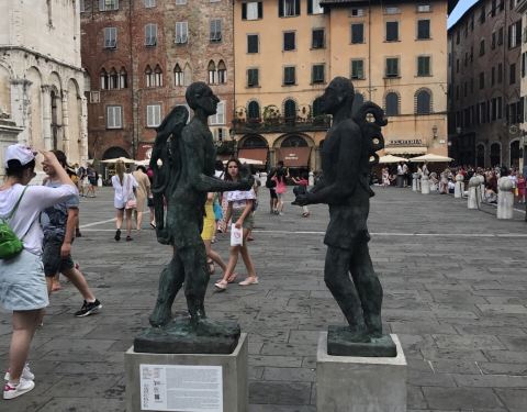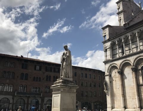 教堂旁边的广场上雕塑也很特别。在小镇上来回逛街,是很好的地标教堂位于卢卡小镇的中心,与小镇的其他建筑相比,宏伟壮观,导游介绍说是哥特式的教堂。教堂旁边的广场上雕塑也很特别。在小镇上来回逛街,是很好的地标!