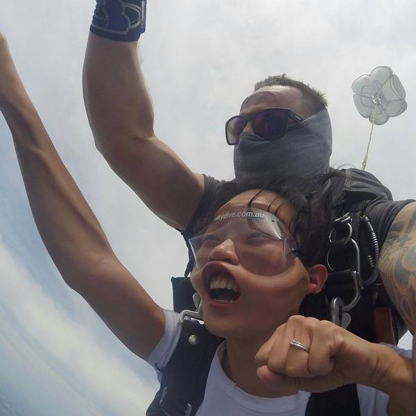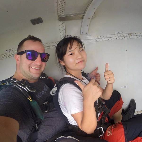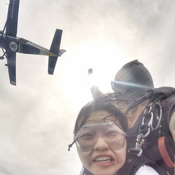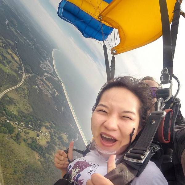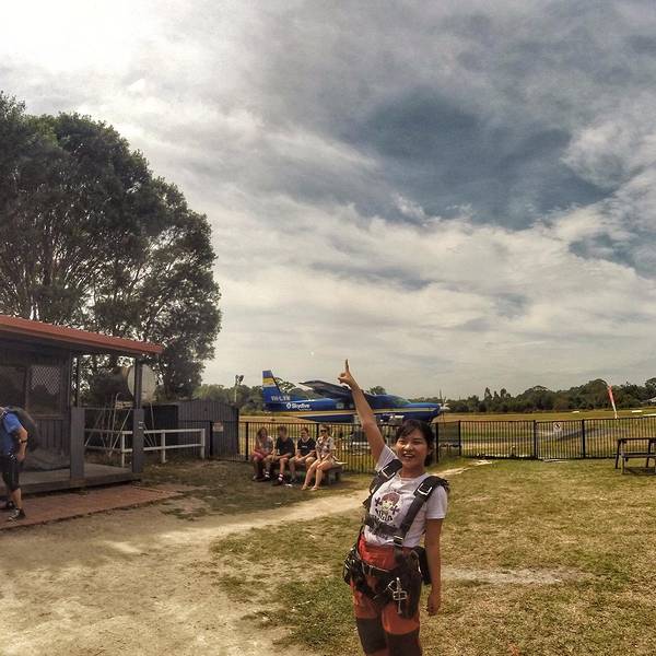 skydive真的是超赞的经历!!五星推荐!!本人全程淡定!!纠结了1个多月的胆儿小🐟先森也突破了自己~~在跳下的一瞬间是最惊心动魄的!急速下冲后,打开降落伞随风飘荡,便是这广袤的世界~~蓝天~白云~大海~田园~~~用🐟的话:像鸟儿在空中翱翔~~心胸都随之宽广了~~只管对着镜头,摆出最炫酷的pose!!!