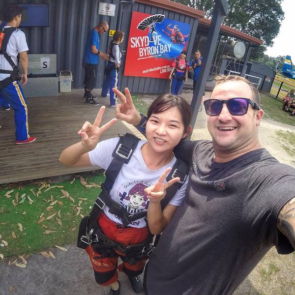 skydive真的是超赞的经历!五星推荐!拜伦湾跳伞:提前一天收到确认短信,回复OK表示确认拜伦湾跳伞:提前一天收到确认短信,回复OK表示确认! 现场交35刀税,买照片视频另计。来回需一天时间,备好食物。注意:穿着衣裤,运动鞋,不要穿带领子的。