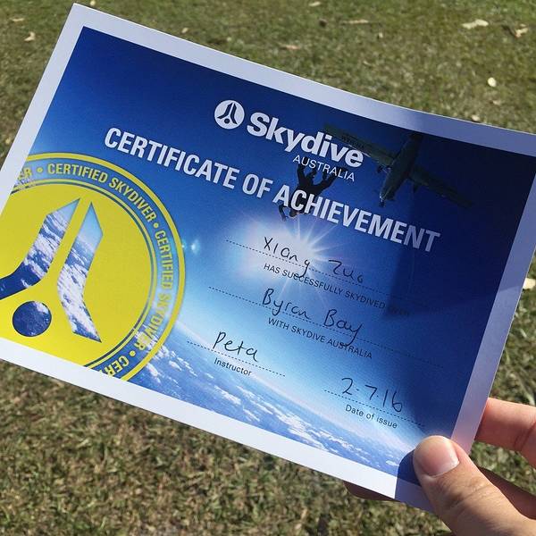 skydive真的是超赞的经历!!五星推荐!!本人全程淡...拜伦湾跳伞:提前一天收到确认短信,回复OK表示确认! 现场交35刀税,买照片视频另计。来回需一天时间,备好食物。注意:穿着衣裤,运动鞋,不要穿带领子的。