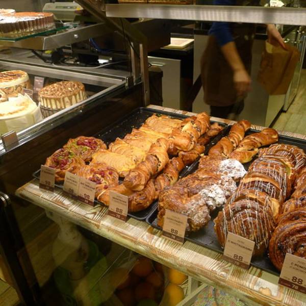 这家面包店就在伊萨克大教堂北面通往涅瓦大街的路上,面包的种类相当丰富,让人难以选择,价格也比较实惠。那些在柜台橱窗里的花式的面包味道不错,墙柜上的面包就是真正俄国风味了,只有小麦的味道,还带些咸味,这样的面包和我们的馒头在食物界的角色一样,就是干粮。 地址:Ул. Малая Морская,7