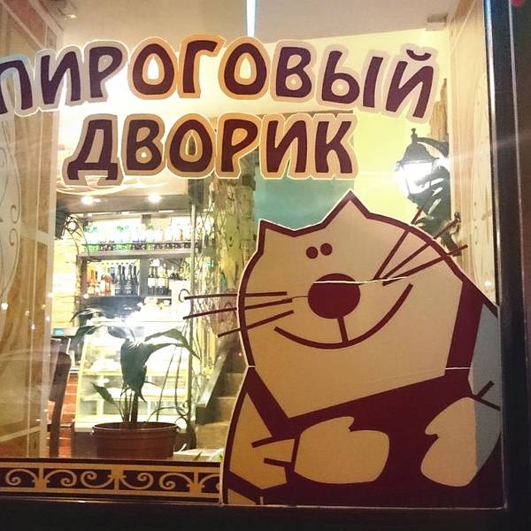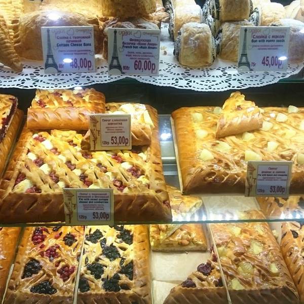 这家店的特色是大馅饼(Пирог),烤的馅饼有各种各样的口味,值得一尝。不过由于店址位于喀山大教堂、圣彼得堡财经大学和俄罗斯国立师大附近,所以这里顾客总是很多。