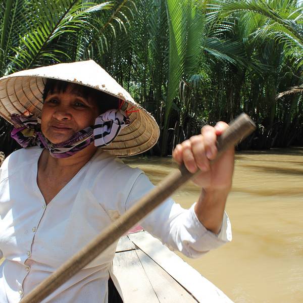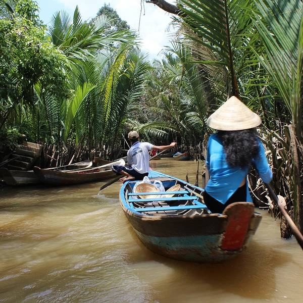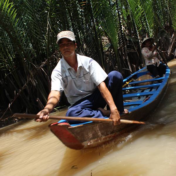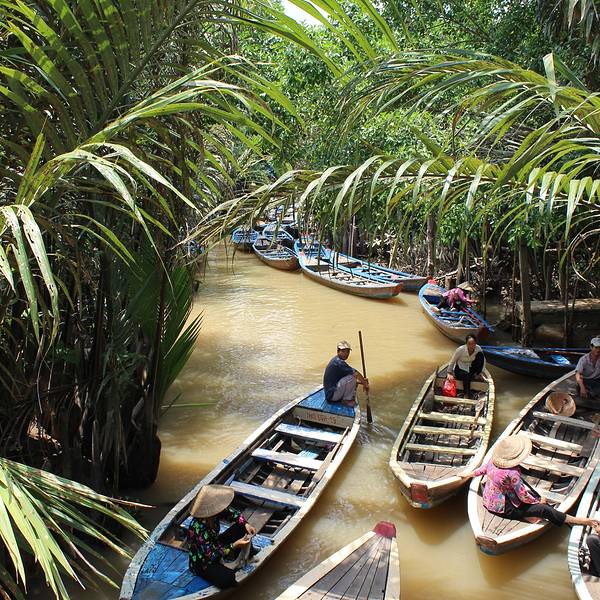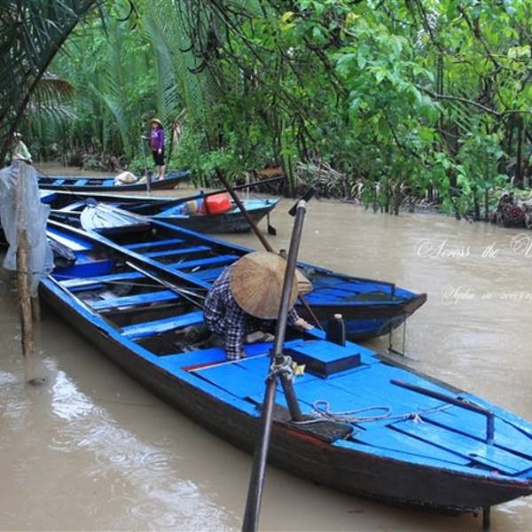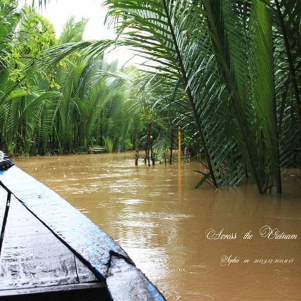 湄公河便是国内著名的澜沧江,发源自中国青海,出境后流经老挝、缅甸、泰国、柬埔寨,最后在越南水量达到流域的顶峰,归入大海。“我们眼下行驶的河段,只是入海口三角洲的一条分支,能看到的所谓‘岸’,都只是河中的岛屿,边界是无法目及的。”当我们停在河道最宽处的中轴线上,导游这样骄傲的描述着他们的母亲河,而我却在想象一股孱弱的山泉如何汇聚能量万里跋涉至此般波澜壮阔,其中的经历必定惊心动魄。跟学妹闲聊说如果再给我们一个月的时间,我们就沿着此河逆流而上回国,这条航线沿途实在是风光无限,太诱人了! 展开