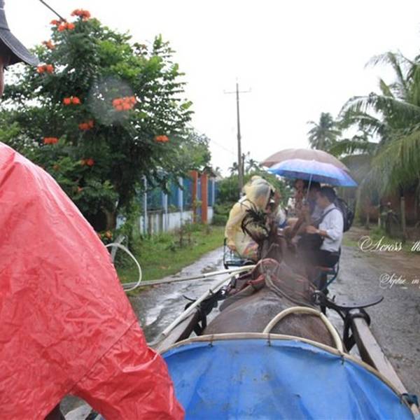 ...此情此景,就应当存在于这样一个纯粹的水的世界中,连同今天一切湿漉漉的回忆,一同浸泡在了心灵深处时至下午,大船终于离开了主河道,进入狭窄的水巷中,登岸换乘一段驴车后,我们被四人一组,分配到了人力执蒿的敞篷小船上。到了这种时候,行程已渐入高潮,大家也顾不上矜持,全体装备上了雨衣斗笠,花花绿绿的...时至下午,大船终于离开了主河道,进入狭窄的水巷中,登岸换乘一段驴车后,我们被四人一组,分配到了人力执蒿的敞篷小船上。到了这种时候,行程已渐入高潮,大家也顾不上矜持,全体装备上了雨衣斗笠,花花绿绿的自在排坐在一串湖蓝色的小舟上,静静的荡过伸手可触的水椰林。四下万般寂静,只闻雨声,依旧如注,却不再为它烦恼,甚至觉得,水,温柔的托举着我们,水,亲密的拥抱着我们,水,创造了这里的一切,此情此景,就应当存在于这样一个纯粹的水的世界中,连同今天一切湿漉漉的回忆,一同浸泡在了心灵深处。 展开