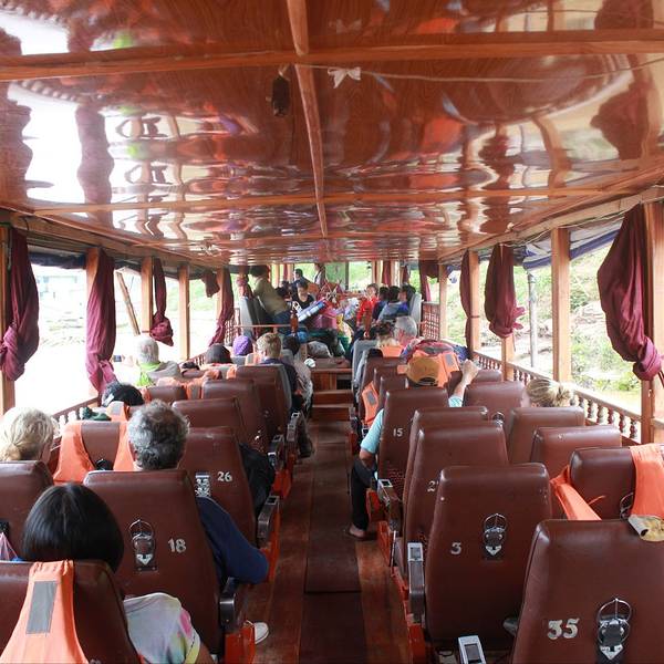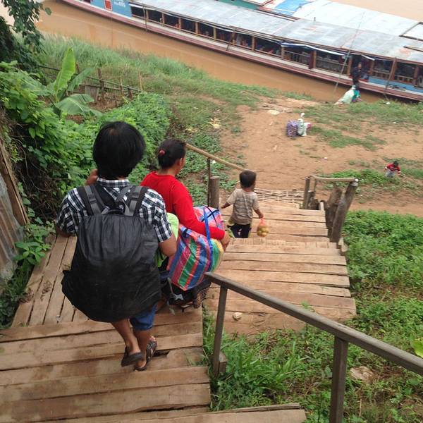 但是路上很多,也告诉我这一段其实很无聊的,因为毕竟岸边没什么特别的风景一大早赶到码头坐船,前面这位,就是胡兰哥,当时确实没想到,在东南亚的行程,我们一直一路走完