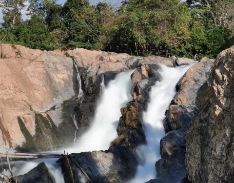 在岛上可以租自行车10,000kip一天。环岛骑一圈最多2小时,要注意防晒。从东德到东阔有一座小桥连接,要收过桥费,早上8点前和下午6点后是每人收的,门票包含里面瀑布的费用,到瀑布那里还是要查票。瀑布景区开放时间:8:00-17:00.东阔岛左边有一个可以出海看江豚的地方,右边有一个里皮瀑布,不高,但是很宽,水很浑浊。岛上有唯一的一所学校,你也可以看到很多大人带着自己的孩子就在岸附近的河边洗澡玩耍。上图为lipi瀑布。