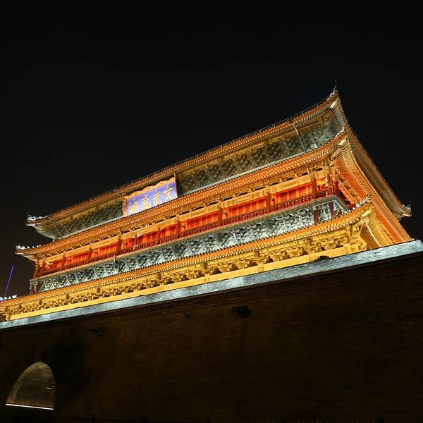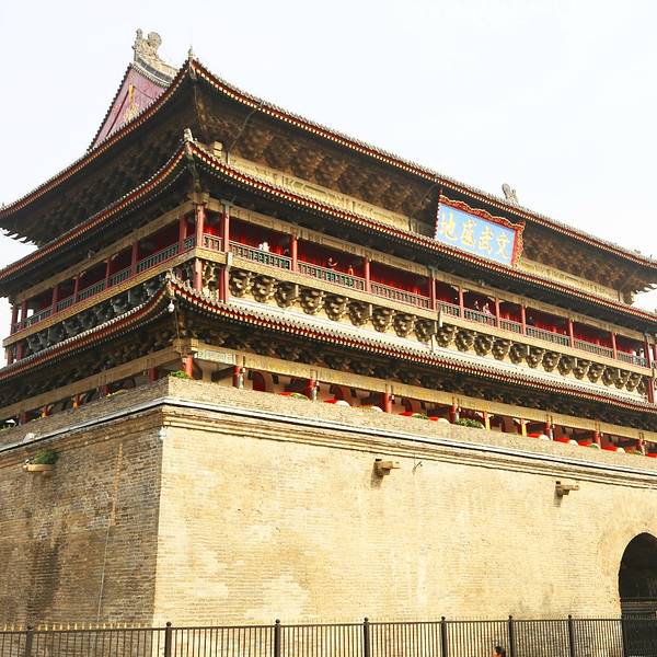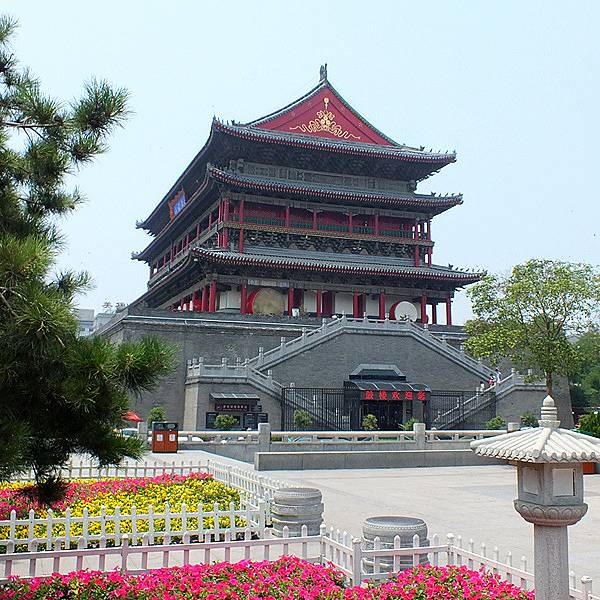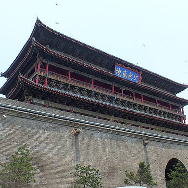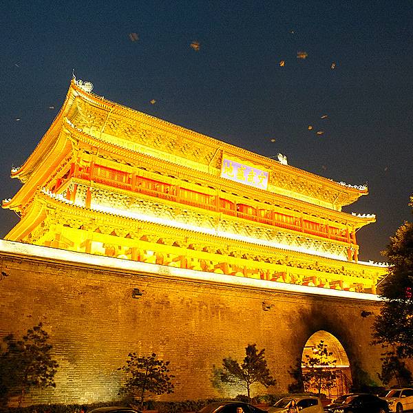 国同类建筑之冠。鼓楼是西安城内明清建筑物的主要标志和代表之一,也是目前所存在的全国较大的鼓楼。古时击钟报晨,击鼓报暮,因此有“晨钟暮鼓”之称,在西安听“晨钟暮鼓”才算真正到了西安。