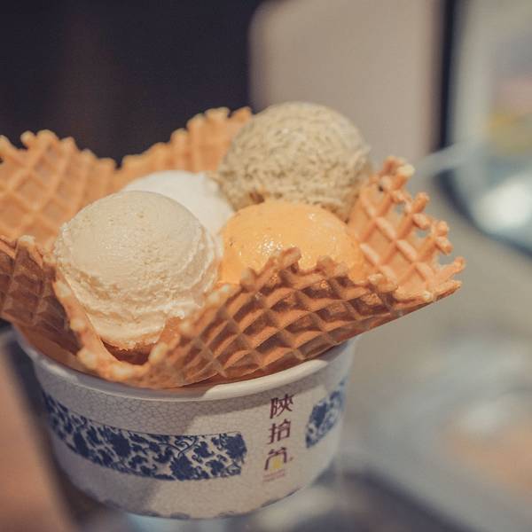 除了秦酥,比较有特色的就是冰酪。冰酪被称作西安人自己的哈根达斯,说实话在回民街逛累了,就来到陕拾叄,在里面点一份冰酪消磨时光。