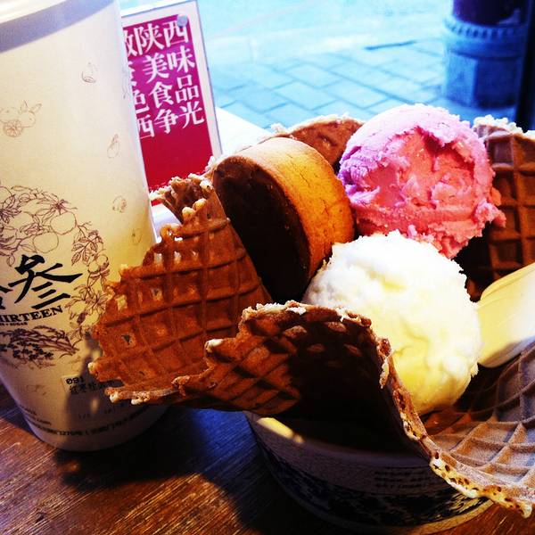 前面总提陕十三,陕十三终于来了!陕十三的冰酪(冰激凌),很多朋友应该都知道。最初的一层发展到现在三层还不够坐,也就是几年时间。他家的座有多紧张呢?他家门上有一话:请带着一颗吃货的心来,这里不是书店...