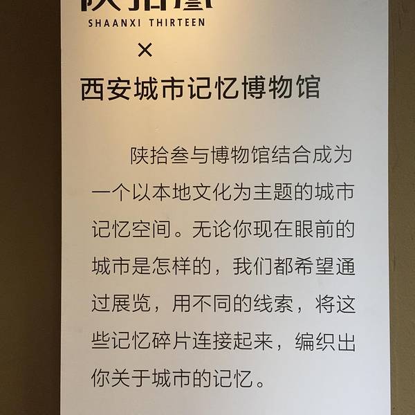午饭后,逛逛钟鼓楼附近的商场,买了一条裤子和一件上衣,然后去了陕拾叁吃下午茶。三天的西安行,我得出了一个经验,那就是一定要少点、一定要小份,否则吃不完浪费。陕拾叁是陕西人自己制作的饮冰品牌,因陕西...午饭后,逛逛钟鼓楼附近的商场,买了一条裤子和一件上衣,然后去了陕拾叁吃下午茶。三天的西安行,我得出了一个经验,那就是一定要少点、一定要小份,否则吃不完浪费。陕拾叁是陕西人自己制作的饮冰品牌,因陕西曾是十三朝古都而得名,以陕西各地农产品为自己产品的原材料,佳县的有机红枣、白鹿原的甜樱桃、周至猕猴桃等都是陕拾叁的原材料。创始人、原材料、品牌都是陕西本土的,因此好评如潮,慕名而去的人很多。在陕十叁,我点了皇冠(蛋卷做托底)+1个豆腐味冰酪+1个醪糟味冰酪,刚刚好。建议先吃豆腐味的,再吃醪糟味的,反之,你会觉得豆腐味的没有味道。重点说一下醪糟味,好像粮食发酵做酒的那种味道,刚开始吃的时候怪怪的,之后越吃越上瘾。其实我还想尝尝油泼辣子味冰酪,但实在是吃不下去了,只好作罢。陕拾叁的二楼是个小型的老西安博物馆,我在里面简单逛了逛了,拿着店里提供的信纸和钢笔,给自己写了一封信,我以这封信作为此次西安之行的结尾,没有遗憾,期待以后有机会再来。