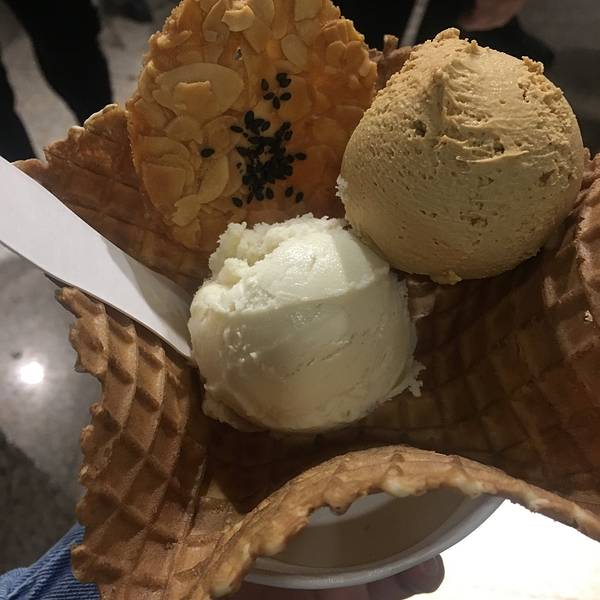 两味冰酪入手~ 先来一匙相对味弱的咸蛋黄,首先冲入的居然是杏仁露的味道,像极了北方常喝的露露牌杏仁露,接着在杏仁...他们家的冰酪两个为底,每两个叠加,口味甚多,不过从头至尾目标只有咸蛋黄及油泼辣子两味~