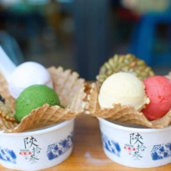 - 他们家的特色是用陕西当地特色食材做成冰激凌,价格也不贵。当然回民街那里也有分店