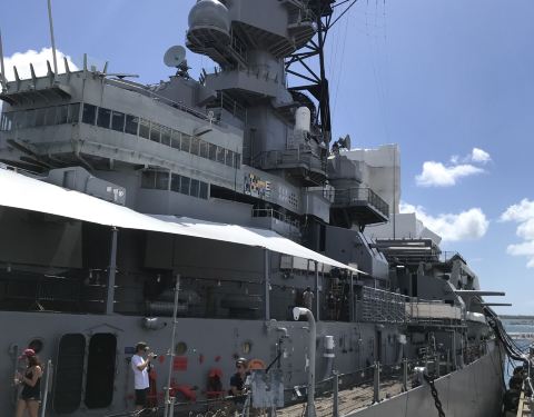 ...威夷这边几个战舰博物馆中的其中一个,这里就有好多人,因为这里的地理位置比较好,游客来这里很方便