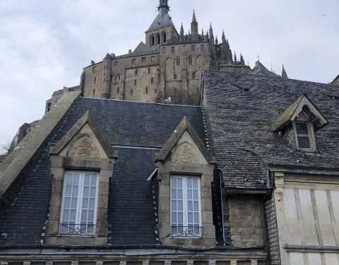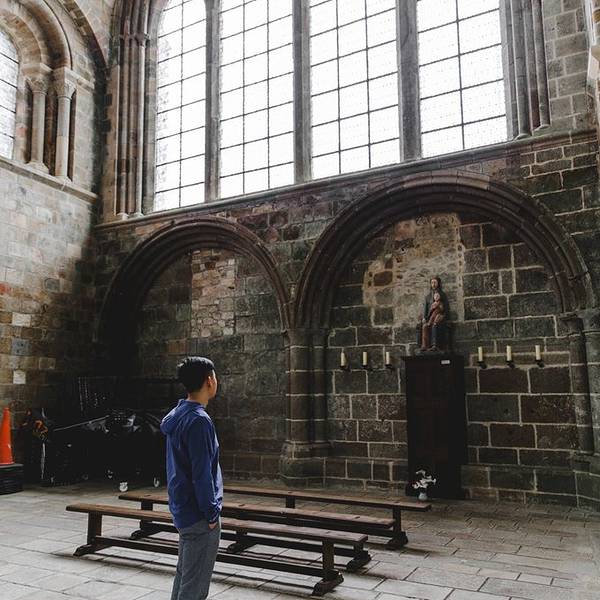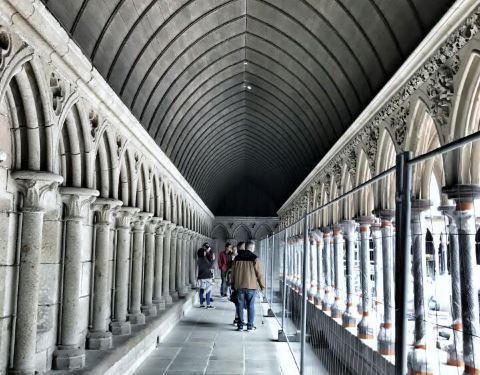 从这里观看大海,真的是非常的漂亮很多游客称它为教堂,其实它是一座修道院,是整个圣米歇尔山的主体建筑,气势十分的雄伟。虽然这座修道院内部的装饰很朴素,不过有这样得天独厚的地理优势内部已经不重要。从这里观看大海,真的是非常的漂亮。