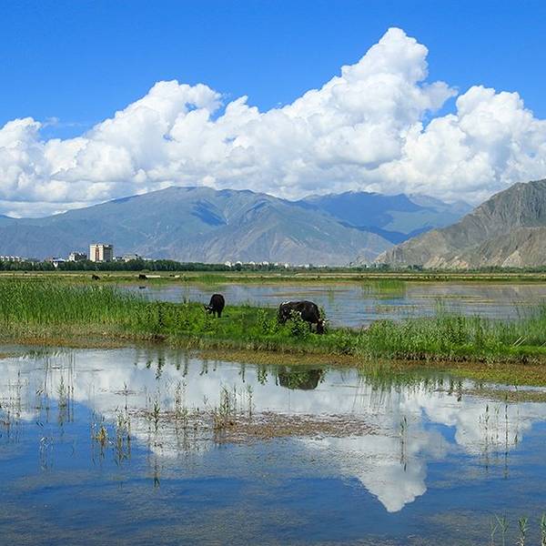 湿地自然保护区还未对外开放,但在夏天,拉萨的任何一个制高处向西北方眺望,都可以看到拉鲁湿地的一片葱郁绿色。