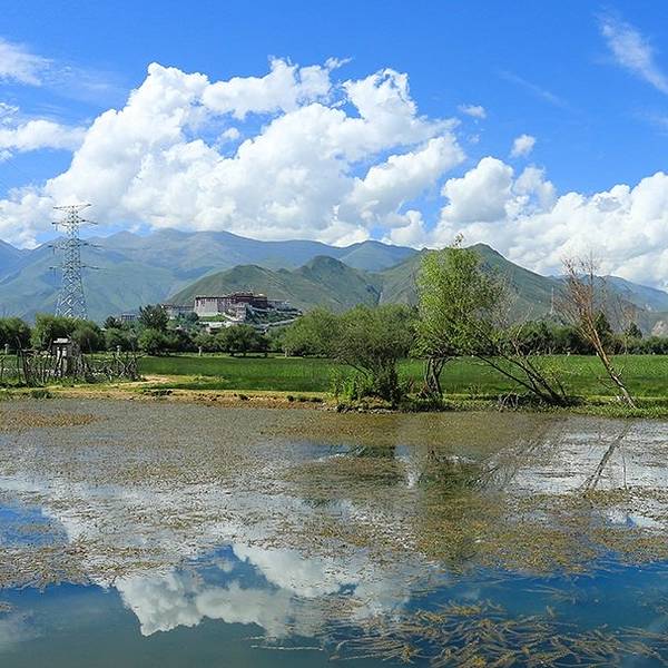 草很多,水有些浑浊,布达拉宫的倒影没有那么明显,但不妨碍它的美。近日来晃荡在拉萨的街头,我还是会想起那一年我们经常进出湿地,