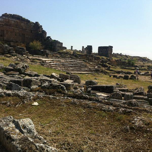 这里是一片户外的浴池,虽然面积不大,但是游客都争先恐后的下去泡澡,因为这里不仅是处于棉花堡的范围之内,而且水池里面还有一些古代的石头。