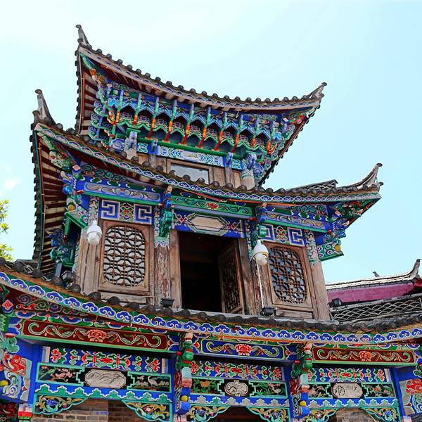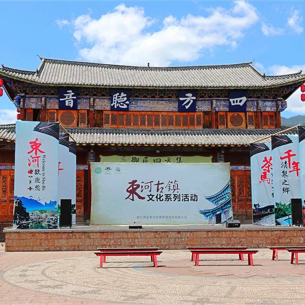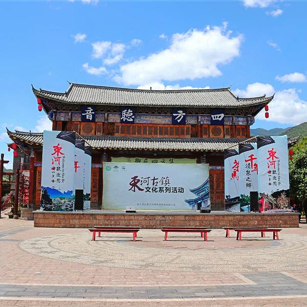 束河古镇的四方听音广场位于古镇偏南的位置,是一个面积仅次于四方街的广场束河古镇的四方听音广场位于古镇偏南的位置,是一个面积仅次于四方街的广场。四方听音广场是文化广场,广场一端是一个具有丽江风格的古戏台,时常会有群众演出。