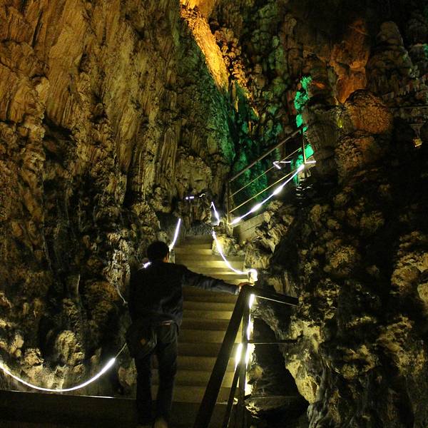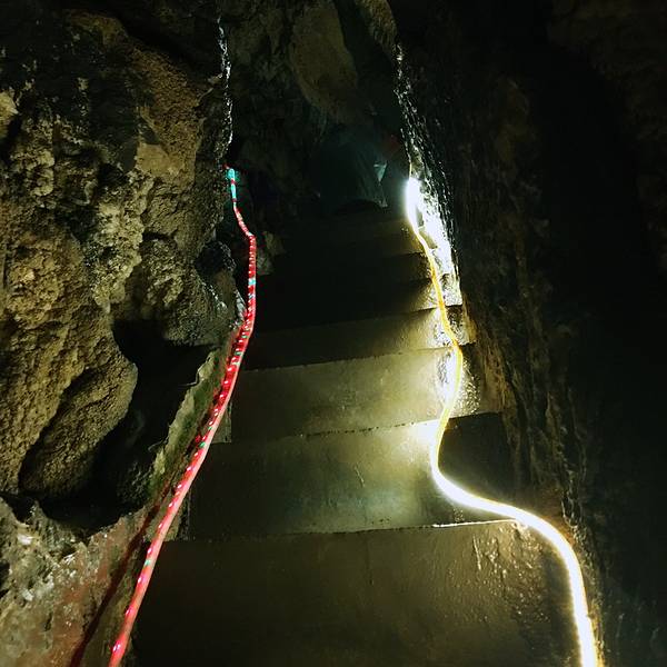洞内很黑,很陡峭,石梯上有很多水,很滑,走的时候要小心,以防摔倒。请叫我女神~(经)