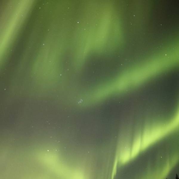慢慢地,綠光由淺變深,越來越強,也有粉色出現,在天空中不停地舞動,那一刻心裡很是激動,我終於看到極光了!!很快地,幾秒時間過去,極光又變弱了,消失了。這幸福來得快去得也快,就得好好地享受當下,被一大片綠光籠罩的天空中,享受這大自然的美妙。