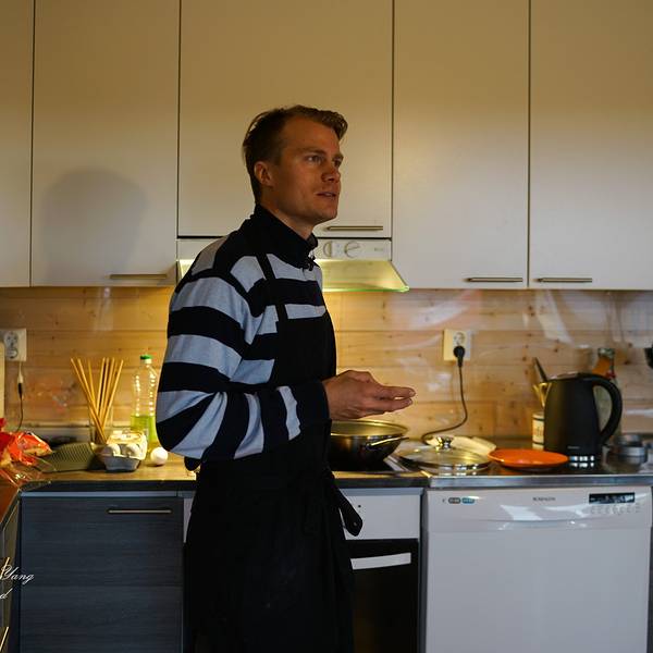 发现了无比巨大的菌菇,整个森林充溢着一股菌类的香气,突然好想吃火锅,就地取材好方便呀铛铛铛,这位系着围裙穿着条纹衫的就是店主Esko了,他已经是三个孩子的爹了,其中有两个都是从非洲领养回来的。一大早他就来给我们做早餐,把屋内的炉火烧的旺旺的,屋子暖暖的。然后大家围坐一起,边吃早餐边聊...铛铛铛,这位系着围裙穿着条纹衫的就是店主Esko了,他已经是三个孩子的爹了,其中有两个都是从非洲领养回来的。一大早他就来给我们做早餐,把屋内的炉火烧的旺旺的,屋子暖暖的。然后大家围坐一起,边吃早餐边聊芬兰的日常。从自然生态维持的超好的森林湖泊聊到芬兰人毫无后顾之忧的医疗和教育,从他曾经在中国待过一年的外派工作聊到他喜欢的上海红烧肉,看似冷漠的芬兰人其实真的很热情。十点多Esko开车把我们送到湖边,告别后我们直接参观伊那里的Siida博物馆,行李可以存放在一楼。Siida博物馆是介绍古往今来萨米人,萨米文化和艺术的一个博物馆,萨米人是居住在芬兰、挪威、瑞典及俄罗斯北部的少数民族,千百年来这里都是他们走过的辽阔土地,在这里可以从自然、活动和他们的生活等各个方面去了解萨米这个特有的民族。