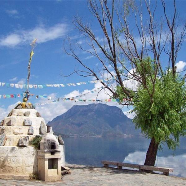 沽水湛蓝山湛清,摩梭拜访拜神灵。