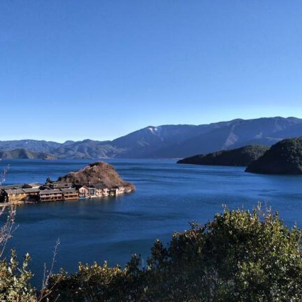 清晨我坐在湖湾的木椅上等待日出,可惜只看到美丽的朝霞,朝阳却躲在被窝里湖岸建有一排崭新的摩梭族(纳西族支系)木楞房,提供住宿、饮食、娱乐,其实就是旅游度假村,只有工作人员与表演者才穿着民族服装,传统、原始的摩梭族母系氏族文化已几乎踪影无存了。 清晨我坐在湖湾的木椅上等...湖岸建有一排崭新的摩梭族(纳西族支系)木楞房,提供住宿、饮食、娱乐,其实就是旅游度假村,只有工作人员与表演者才穿着民族服装,传统、原始的摩梭族母系氏族文化已几乎踪影无存了。 清晨我坐在湖湾的木椅上等待日出,可惜只看到美丽的朝霞,朝阳却躲在被窝里。几艘摩梭族的猪槽船静静泊在岸边,偶尔随风荡漾,霞、船、湖、山构成静谧、柔美的画面。 展开