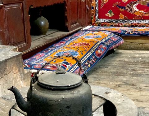 木屋中木雕很有特色摩梭人是生活在泸沽湖边的少数民族,木楼是他们独特的建筑,火盆是家中做饭的地方,腊肉摆在火盆旁,经年累月一点点熏熟。木屋中木雕很有特色。