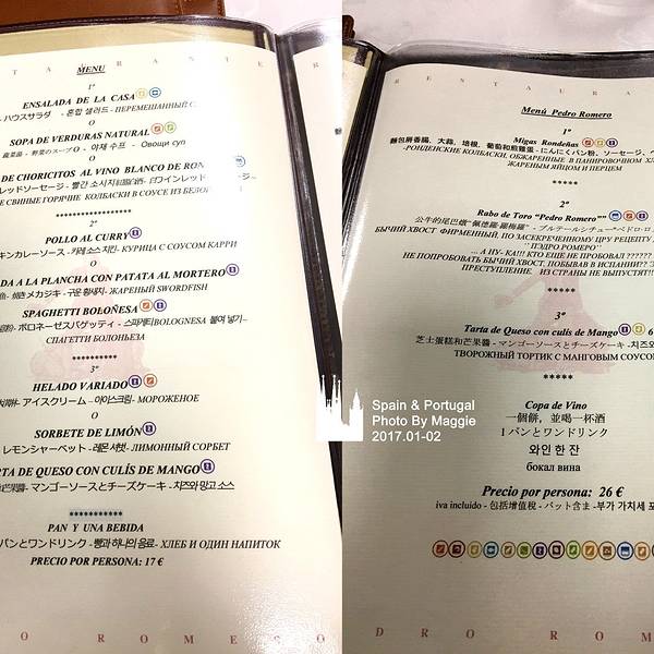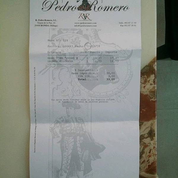 傍晚,饥肠辘辘的我们选择了先填饱肚子。 龙达的吃:龙达斗牛场对面的Restaurant Pedro Romero:推荐红烧牛尾,鸡汤,杏仁雪糕 餐馆很容易找,就在斗牛场的对面。我们去得早,没有定位。餐馆的名字就是那个很出名...