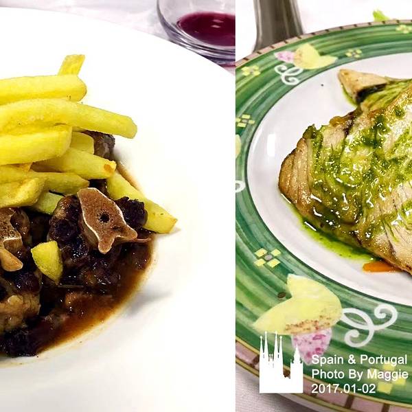 傍晚,饥肠辘辘的我们选择了先填饱肚子。 龙达的吃:龙达斗牛场对面的Restaurant Pedro Romero:推荐红烧牛尾,鸡汤,杏仁雪糕 餐馆很容易找,就在斗牛场的对面。我们去得早,没有定位。餐馆的名字就是那个很出名的斗牛士的名字。餐馆里装饰了很多真的牛头,不知道我们吃的牛肉是不是直接从对面运过来的。不过,牛尾真的很好吃。