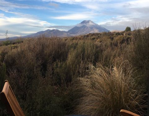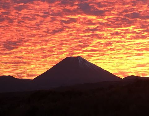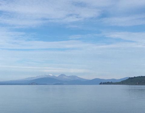 天好的时候从陶波湖远远望去,汤加里罗国家公园的瑙鲁豪伊火山锥,就在那里