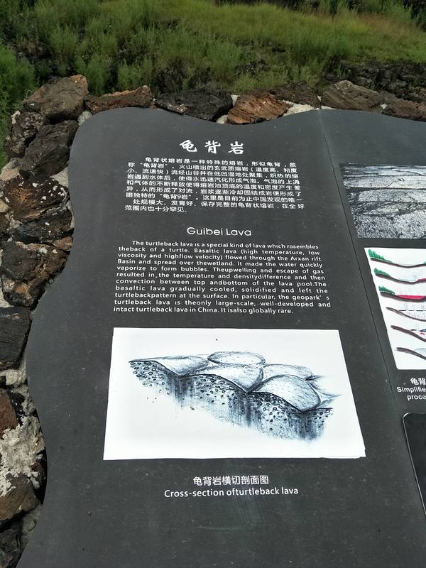 龟背岩位于阿尔山森林公园兴安服务区的路边,属结壳状熔岩流,形似龟背而得名龟背岩位于阿尔山森林公园兴安服务区的路边,属结壳状熔岩流,形似龟背而得名。这种构造有一定时间间隔,形成条件比较苛刻,所以是不多见的。