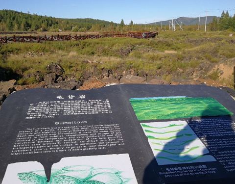 【景色】一条栈道从龟背岩地貌中穿过,再绕回到公路上,吃完饭,正好查着深秋初冬的暖暖阳光散散步【位置】从月亮天池出来的午餐我们就在天池镇吃了。百度导航”兴安站”,也是“新安服务区”。上世纪 60 年代林场修起了运送木材的铁路,兴安站就是其中的一个小车站。如今这里成为了阿尔山森林公园内一个餐饮住...【位置】从月亮天池出来的午餐我们就在天池镇吃了。百度导航”兴安站”,也是“新安服务区”。上世纪 60 年代林场修起了运送木材的铁路,兴安站就是其中的一个小车站。如今这里成为了阿尔山森林公园内一个餐饮住宿的集中场所。 龟背岩就在这片餐饮外面的广场边。 【景色】一条栈道从龟背岩地貌中穿过,再绕回到公路上,吃完饭,正好查着深秋初冬的暖暖阳光散散步。黑乎乎的一片,但真的很像龟背的裂纹,名字很形象。 据说这种地质构造在我国不多见的,火山专家称之火山中的“国宝”。 展开