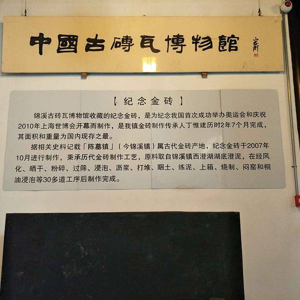 值得参观锦溪古镇上的中国古砖瓦博物馆,是我国唯一的一座以砖瓦为题材的博物馆,实物展品丰富,“金砖”历史辉煌;值得参观。需凭联票进馆。
