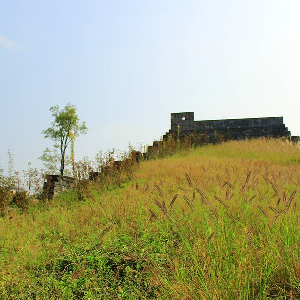景点是在古城墙遗址上修复的,城墙边缘有未封顶的城墙原貌,荒草丛生,颇有历史沧桑之感