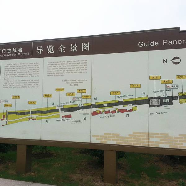 游览路线可从东园、明轩、耦园一路走到相门,再到平江路。相门城墙景观建设工程,2012年重建