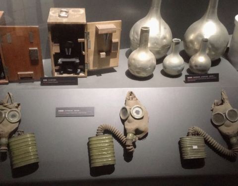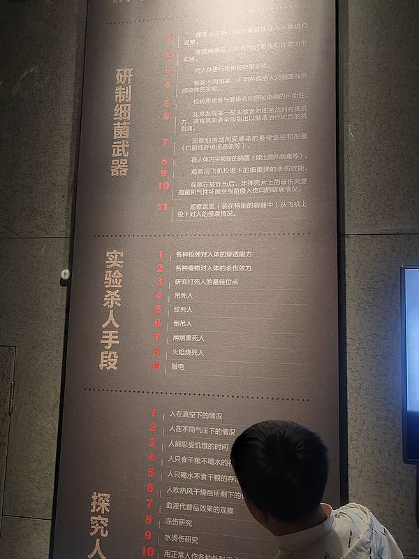 陈列着侵华日军用活人做实验的大量罪证,警示国人勿忘国耻。