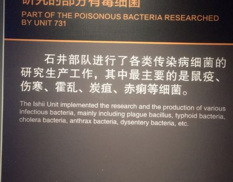 位于哈尔滨南郊的侵华日军第七三一部队罪证陈列馆,陈列着日本侵略者当年用活人做实验的大量罪证,这里的各种实验用具、人物场景塑像、图片和证言资料,以及微生物实验室、冻伤实验室、焚尸炉等遗址都是山一般的铁证。731部队始建于1933年,在长达二十多年间,731部队用俘虏的中国军人和大量无辜的中国百姓实施人体试验,包括冻伤实验、解剖活人、毒气实验、微生物实验、压力实验等等。而如今还有很多放射性器具埋藏在中国东三省的土地上。遗址陈列馆分为室内展馆和室外遗址,室内展馆即731部队的本部大楼,大楼的中心走廊两侧墙上记录着近三千名人员名单,他们都是在微生物实验和微生物战中的受害者,这些名单都是有据可查的,包括中国人、苏联人、蒙古人和朝鲜人。其中以“特别移送”手段通过这条长廊运送到“特设监狱”而惨遭杀害的有1467人,余下的1000多人多是南方微生物战争的受害者。1945年日本投降前夕,731部队败逃时还不忘继续残害中国人民,他们将染有鼠疫菌的老鼠放出,致使1946年平房地区发生了鼠疫,大批当地居民死于这场灾难。为了掩盖731部队的罪行,在他们败逃之际炸毁了这里的大部分建筑,形成了现在所看到的遗址格局。731部队是世界战争史上规模较大的微生物战部队,这里同奥斯维辛集中营并称为世界两大歼灭人类的杀人魔窟。这里展示的不只是日本侵略者的滔天罪行,更是警示着中国人勿忘国耻。