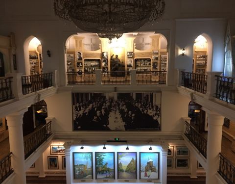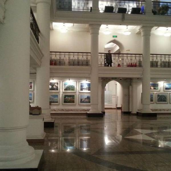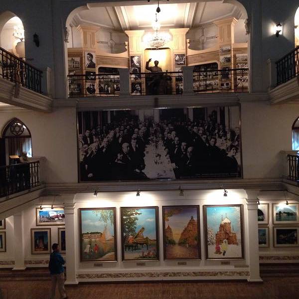 一共三层,一楼是图片展,有些关于哈尔滨的风光照片,还有些油画版画,都是近代品。二楼是犹太名人展,三楼是本地犹太历史以及建筑历史展览,还有些仿制模型。门口正在施工的样子,从左右两边的小通道可以进去,或者从广场后面也可以绕过来。窗格子跟外面的铁栅栏都很有特色正常的时候的售票处,因为施工关系,这里暂时关闭,直接到正门购票进入这座建筑建于1921年,至今已经有九十多年的历史了。犹太建筑风格现在名字叫做哈尔滨市建筑艺术馆,跟索菲亚有些联系开放时间门口的拱形木质的结构,窗格子很有风格,还保留了当年的样貌。门票,12学生票,三类保护建筑的参观开始。右手边是内部的售票处,二楼从外面能够看到,这个建筑结构还是很复杂的,马迭尔里面还是类似的风格。据说哈尔滨是中国唯一的先有建筑施工图纸才建设的城市,以火车站为中心,发散性蜘蛛网状建筑,又保留了太多的俄式建筑展出一楼大厅一楼的画作展出一楼的展品,这个建筑在文化公园里面这是火车站中心的建筑,在伏尔加庄园复原建了一个新的。一楼大厅的模型展,这是南岗博物馆转盘道的一个欧式建筑,现在是kfc一楼大厅二楼展品世界上伟大的犹太人图片展二楼走廊栏杆细节都很足二楼图片展展品三楼老照片,最大那张就是博物馆吊灯风格也很复古哈尔滨最早的音乐学校,也是犹太人开的选美比赛吊灯大厅吊灯解放前的一些证件的样子主题展三楼三楼三楼一楼大厅的大理石地面也有标志火车站的模型 展开
